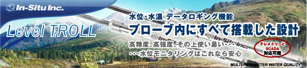 水位・水温のモニタリングを大きく進歩させる新商品、Level TROLLTMをご紹介します!Level TROLLTMは水位測定とデータ記録に必要である水位センサー、水温センサー、データロガー、内部電源のほか、多くの新機能をわずか直径18.3mmの本体内にすべて内蔵しています。また、従来のo-ringによる防水法を排除し、すべてが丈夫なチタンにより溶接されているため、海洋環境を含むあらゆる環境において、高い信頼性を実現できるでしょう。Level TROLLTMのご使用は水位をモニターする最も簡単な方法となるでしょう!